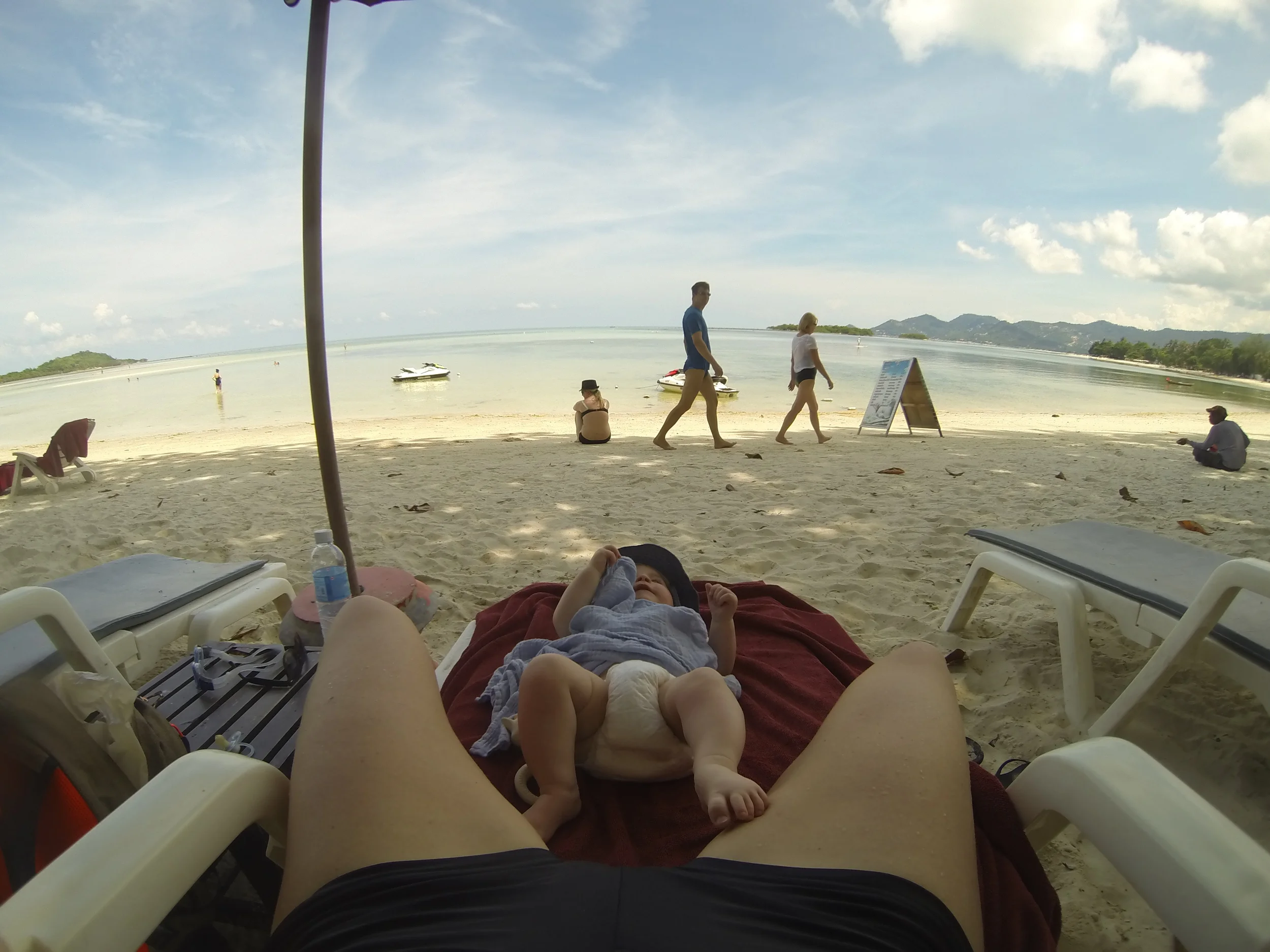 Today we leave Koh Samui. For now. We'll spend 28 days on Koh Phangan, and then come back here for another two weeks before heading home. It's strange to think we've been here for two weeks already. It's been so very different from what we're used to. Gone are the days where we would get up and spend the whole day sitting on the beach, swimming in the sea, and enjoying cold beer as we watched the sun go down. Instead, they're mostly about being with Melvin, and taking care of the little guy. But that's OK. That's what this trip is all about.