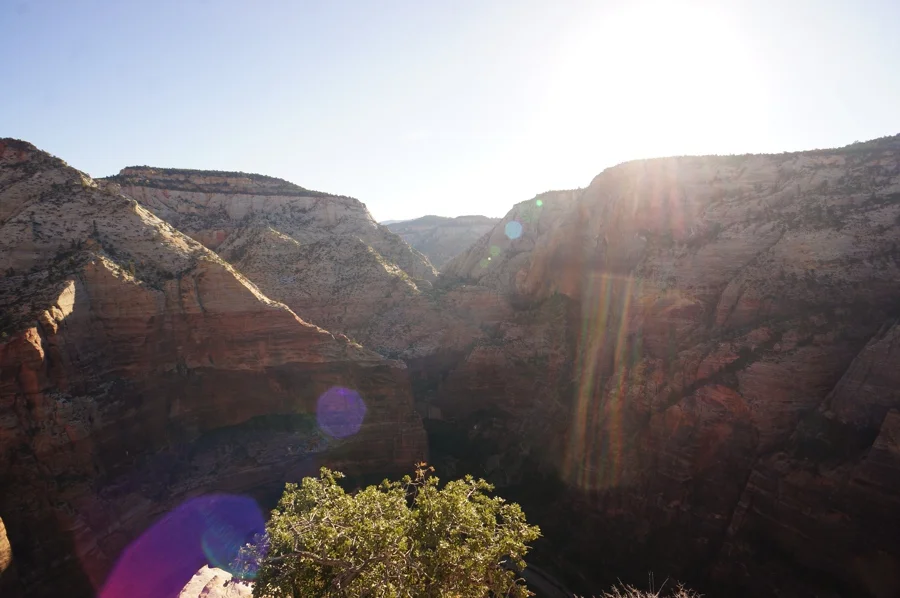 The hike down is pleasant. Good mornings are said over and over as I pass other hikers, and when I reach the bottom, I fall in to conversation with a couple from North Carolina who I met up at the top. They had both started out, but within just a few metres, she had decided not to do the final stretch, but he had pushed on. I passed her and exchanged a few nervous 'oh shits', before I moved on. I talked briefly to him at the end of Angel's Landing (the landing?), before he said goodbye and made his way back. We talk about Brexit, how Americans travel so much within their own country (I say I don't blame them - they say they don't have cool castles and Stonehenge), and how people know about Zion. They give me some tips on what to do, and I make my way back to the car. After a brief visit to the visitor centre, I make my way to another short hike. At least, I think I do. After much driving I stop for lunch at a Thai place, of all places, then realise I'm going the wrong way. Seeing as it was so dark on my way in, I'm completely disorientated. I curse myself repeatedly and grudgingly turn around. Not so bad really. But it's a nice drive, and I have nice views.