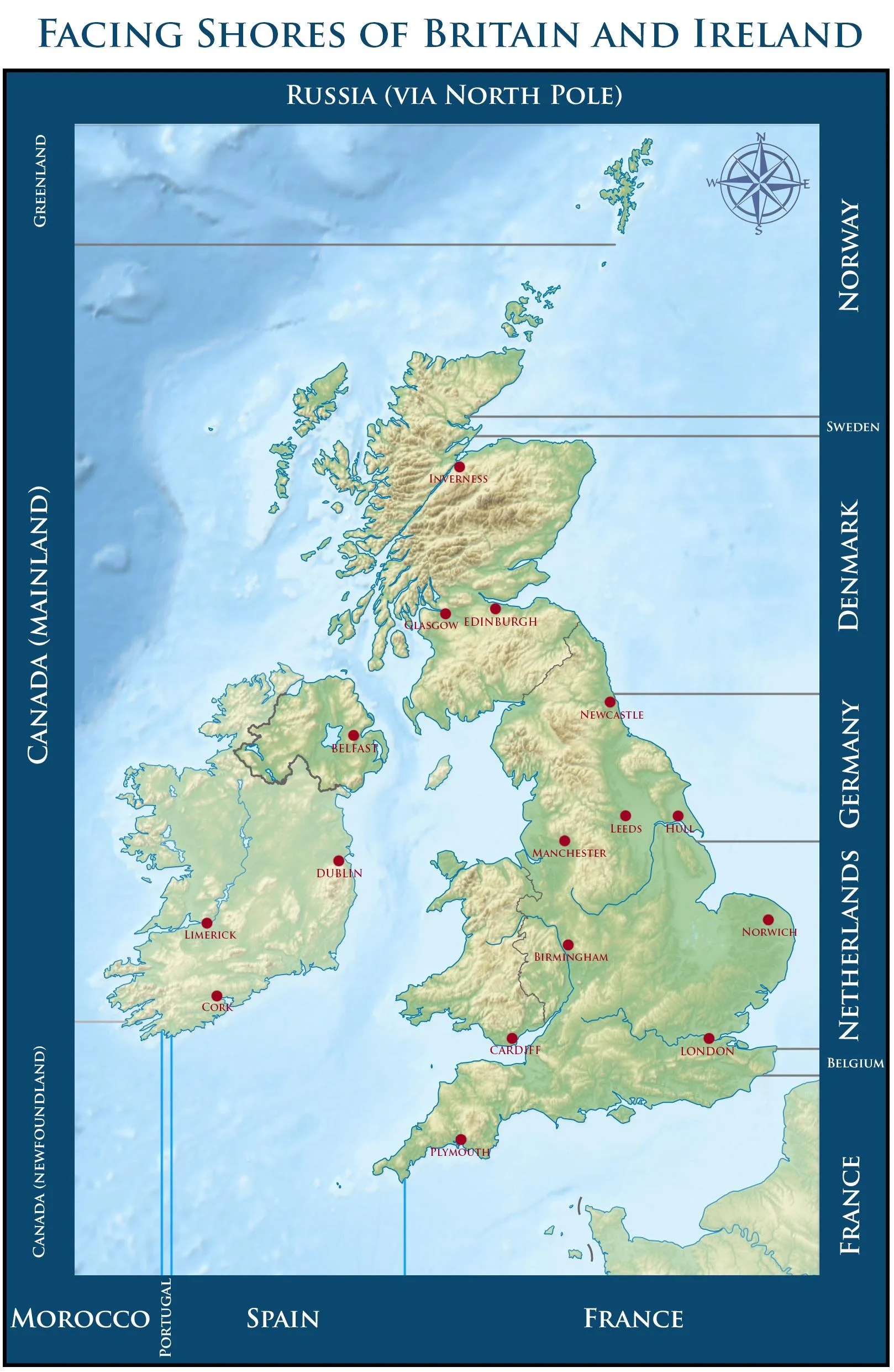 Next time you're standing on the shores of either Britain or Ireland, whip out this post and you'll know what you'd be looking at if you had really, really, really, really good eyesight.